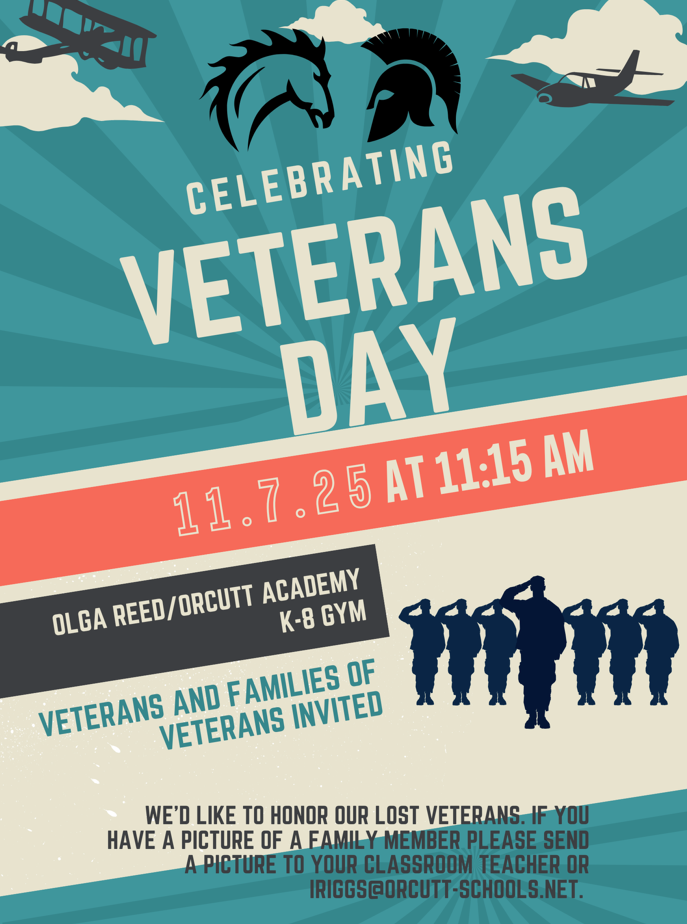 Dear Olga Reed and Orcutt Academy Parents and Families, We are pleased to announce that we will be holding a special program to honor the brave individuals who have served our country. Our Veter. . .